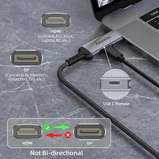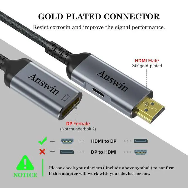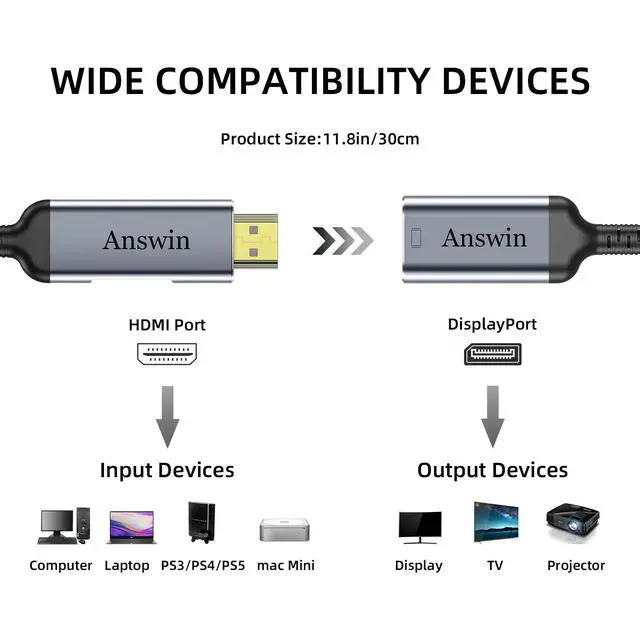 Answin 4K HDMI to Displayport Adapter allows you to connect HDMI device such as laptop, PC, Mac Mini, Blu-ray player, camera, PS3, PS4, PS5, Xbox, video game console to a DisplayPort monitor.