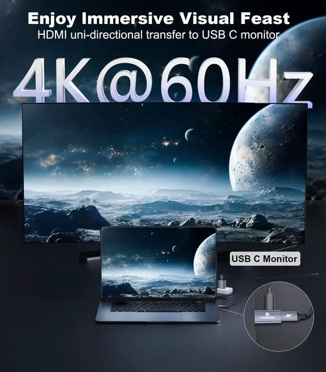 Immerse Yourself in Stunning 4K Clarity: HDMI to USB C adapter is a necessity for your home entertainment or out of office, amazing 4K@60Hz UHD resolution can bring you extraordinary visual clarity, can bring you smooth 3D visual effects, and backward compatible with 4K@30Hz, 2K@60Hz,1080P@120Hz/1080P@60Hz (Note: It is not a two-way converter, it can only transfer signals from HDMI to USB C display device in one way). It can only transmit the signal from HDMI to USB C display device in one direction)