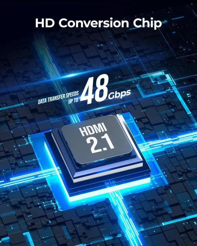 Built-in High-Performance ChipThe wegear USB C to HDMI adapter is equipped with the latest HDMI 2.1 conversion chip. With a high-speed data transfer capability of 48Gbps, this Type C to HDMI adapter ensures fast and stable transmission. It performs exceptionally in 4K and 8K modes, delivering smooth, lag-free, and interference-free HD content.