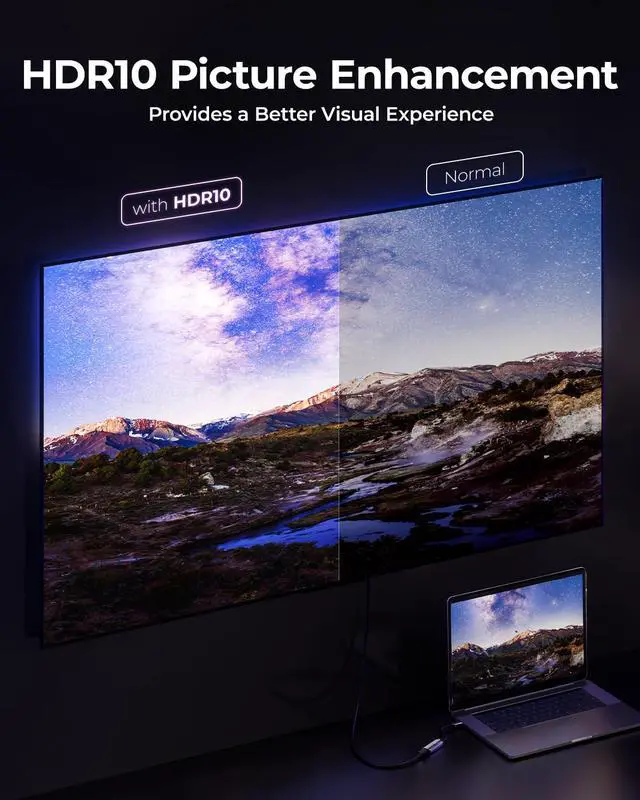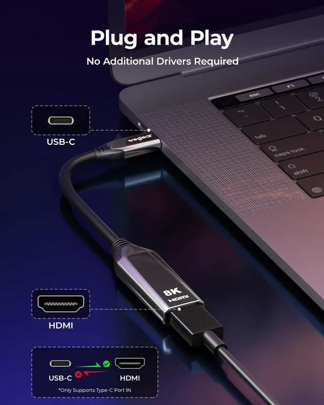 Enjoy the Ultimate Visual FeastThe wegear USB C to HDMI adapter supports high-resolution output of 8K@60Hz and 4K@144Hz, delivering an ultra-HD visual experience. This Type C to HDMI converter also features HDR 10 enhancement, enriching detail presentation for a perfect visual feast. Whether for home theater or work projection, this Thunderbolt 3/4 to adapter meets all your needs.