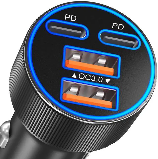 4-in-1 USB C Car Charger 90W Multi Port USB-A & USB-C Cigarette Lighter Adapter
