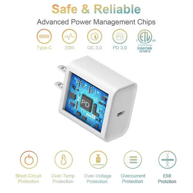 This type c charging block features a tough construction to protect against scratches, scrapes, bumps and drops. Compared with 5W original charger, this 20W PD fast charger for Phone could save more than 1 hour for you!