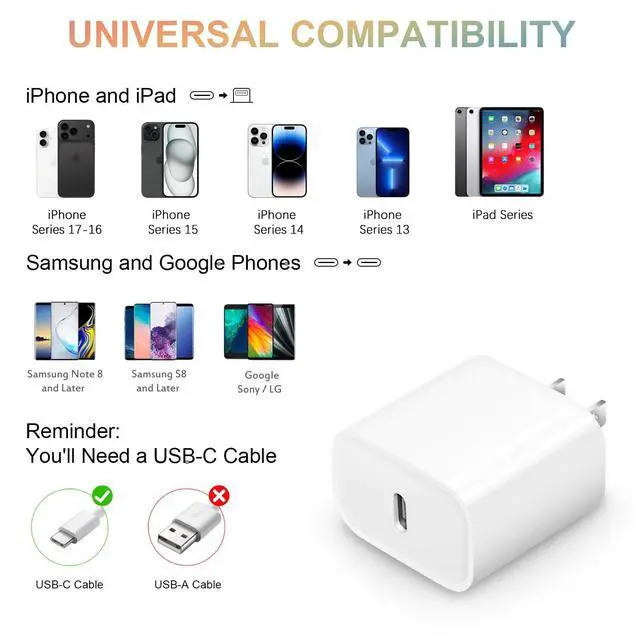 STAMISH USB C Charger PD Wall Charger 3x Faster for iPhone 16/16Pro/16Pro Max/16Plus, iPhone 15/15 Pro/15 Pro Max/15 Plus, iPhone 14 / 14 Pro / 14 Pro Max / 14 Plus, iPhone 13 / 13 mini / 13 Pro / 13 Pro Max / iPhone 12 / 12 mini / 12 Pro / 12 Pro Max / iPhone SE (2020) /11 / 11 Pro / 11 Pro Max / XS / XS Max / XR / X / 8 Plus / 8, iPad, AirPods and More Power Delivery 3.0 Fast Charging. The STAMISH 20W Fast charger is optimized for energy efficiency and safety and meets top industry standards.