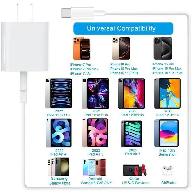 ![Alt view image 6 of 7 - iPhone 17 16 15 Charger Fast Charging [2Pack] 33W Type-c Wall Charger Fast Charger Block with 6FT USB C to USB-C Cable for iPhone 17/17 Air/17 Pro Max/16/16 Plus/16 Pro Max/15 Pro Max/iPad Pro](https://c1.neweggimages.com/productimage/nb640/C5M0D2603210Y7NUB08.jpg)