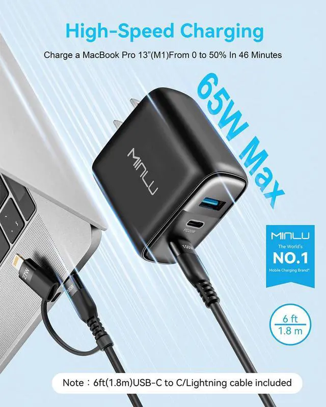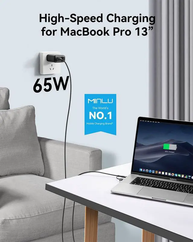 Connect to either 65W USB-C port to charge flagship notebooks including MacBook Air 2020, MacBook Pro 13'', Dell XPS 13 9380, ThinkPad X390, and more at high speed.