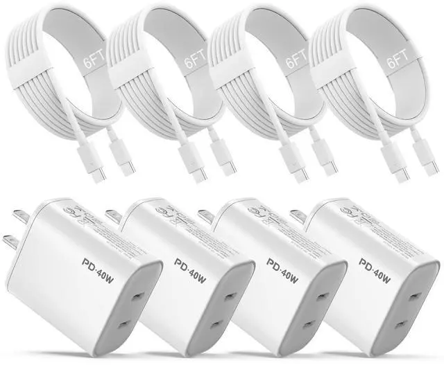 | Included Components | 4 x 40W Dual Ports USB C Fast Charger Block, 4 Pack of 6 ft USB-C to C cable |