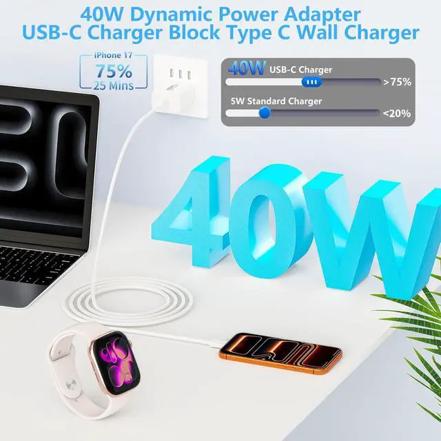 | Included Components | MFi Certified 2Pack 40W Dynamic Power Adapter USB C Charger Block Type C Wall Charger for iPhone 17. |