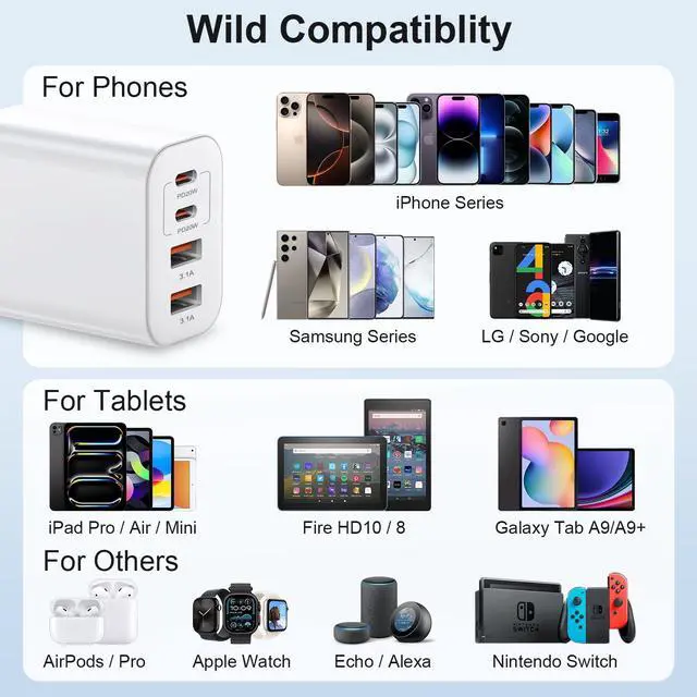 | Compatible Phone Models | iPhone 17/iPhone Air/iPhone 17 Pro/iPhone 17 Pro Max/iPhone 16/ iPhone 16 Pro/ iPhone 16 Pro Max /iPhone 15/ iPhone 15 Plus/ iPhone 15 Pro/15 Pro Max, iPad Pro 12.9 inch 6th/ 5th / 4th/ 3rd, iPad Pro 11 inch 4th/ 3rd/ 2nd/ 1st, iPad Air 5/4th, iPad Mini 6th, iPad 10th Generation; MacBook Air M1 M2 , for Samsung Galaxy S23, S23+, S23 Ultra, S22, S21, S20, S10 and more. |