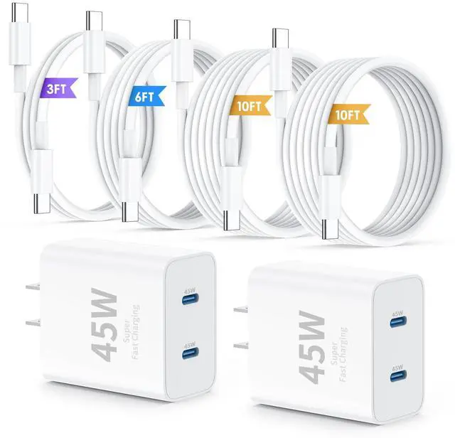 17 16 15 Pro Max Charger Fast Charging,45W Dual Port USB C Fast Charger Block [2-Pack] & Extra Long 60W 3/6/10/10FT USB C Cable - PD Quick Adapter 3.0 for iPhone 16 15 17/16 15 17 Pro.