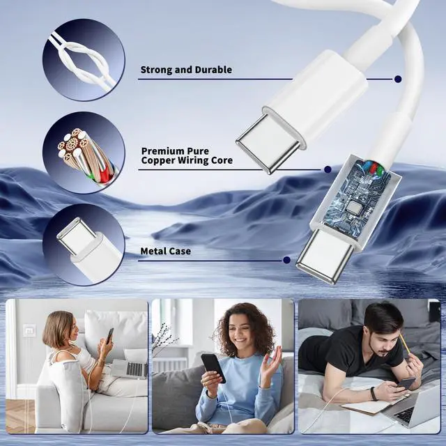 60W USB C iPhone 17 16 15 Charging Cable :The iPhone 16 Pro Max charger comes with a 10-foot long C-to-C charging cable that supports PD 3.0 fast charging speeds up to 20V/5A (100W), and the reversible design of the cable allows for easy insertion, It also achieves efficient 480Mbps data synchronization. It's 10 feet long, and you can move your device while keeping it powered up.