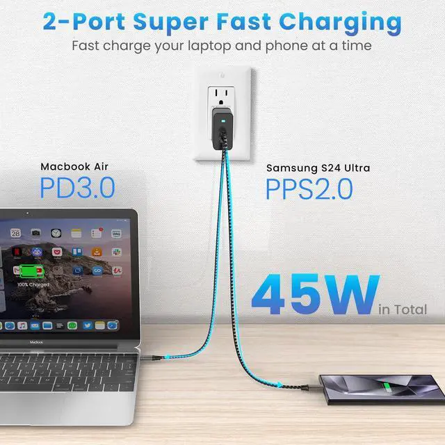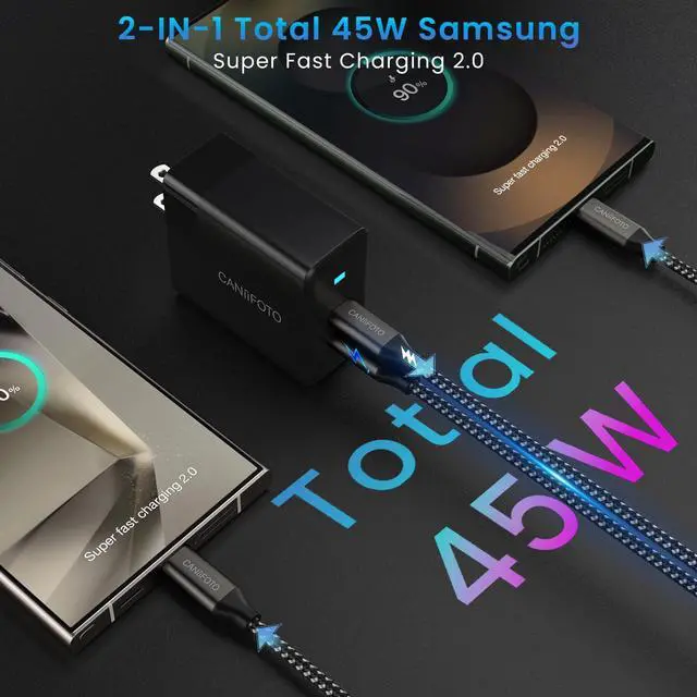This 45w super fast charger type c kit is compatible for the newest Samsung Galaxy S24 Ultra and other Samsung devices which support Samsung "Super Fast Charging 2.0".