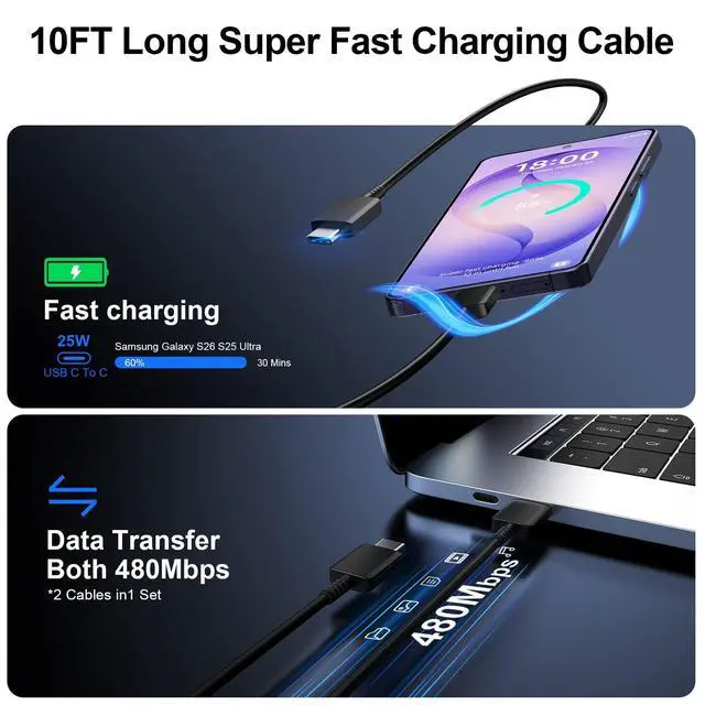 45W Super Fast Charger USB C, Type C Chargers Fast Charging Android Phone Charger Block Samsung Galaxy S25 Ultra Chargers 10FT Fast Charging Cord for Samsung Galaxy S26 Ultra/S26//S25/S24/S23, 2Port