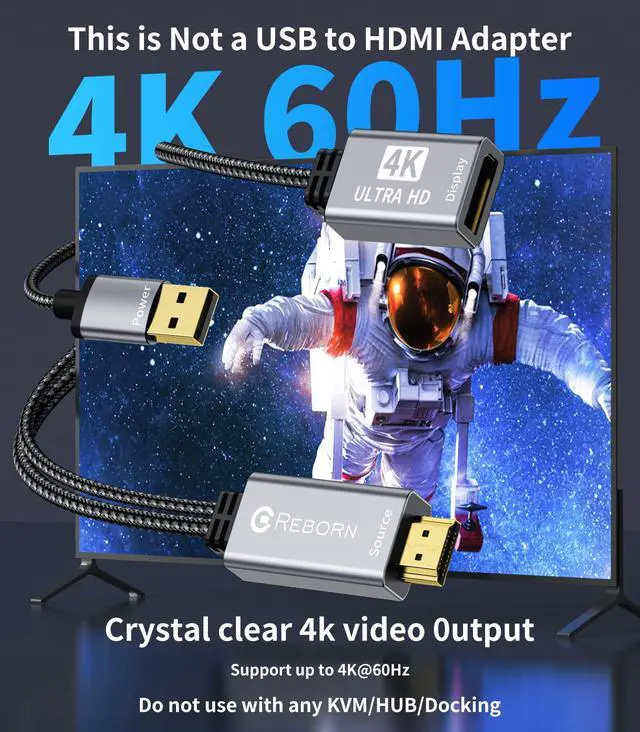Amazing 4K Visual EffectsLeading 2K and 1080P resolution HDMI to DisplayPort adapter enables extraordinary visual clarity in stunning 4K UHD resolution at smooth 60Hz, perfect audio pass-through to immerse you in true cinematic enjoyment. Backward compatible with 1440P@60hz and [email protected]: Be sure to connect the Micro power cable for optimal display. Cannot be used with any Hub/KVM/Docking/Switch. VR is not supported