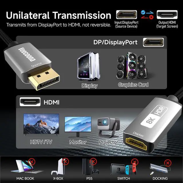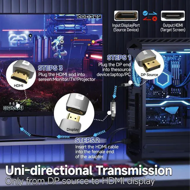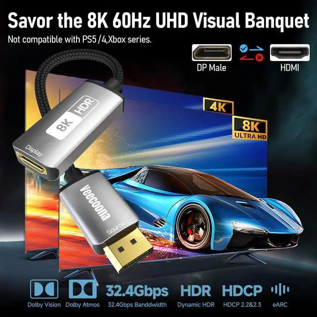 ![Alt view image 5 of 7 - DisplayPort 1.4 to HDMI 2.1 Adapter [8K@60Hz, 4K@120Hz] Unidirectional DP Source to HDMI Display Converter Display Port Adapter for PC RTX/AMD Card - Not Work with PS5](https://c1.neweggimages.com/productimage/nb640/C5JMD260323021HDL3B.jpg)