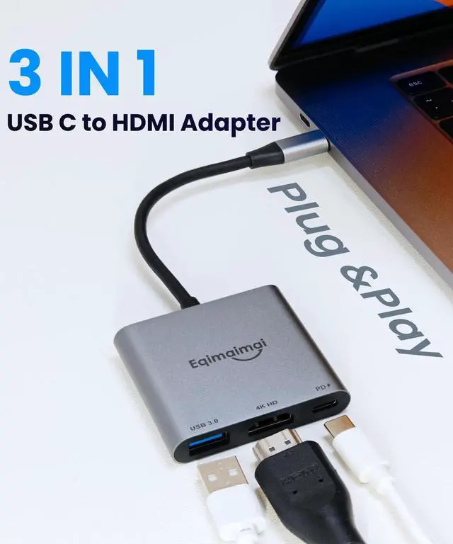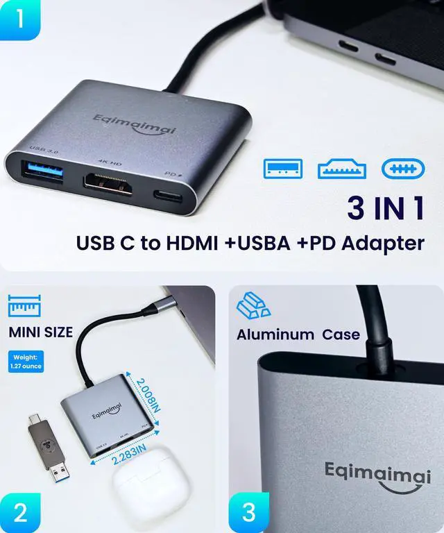 Eqimaimai USB C to HDMI adapter is very portable with a small footprint and lightweight design, easily fits in your pocket or laptop bag.