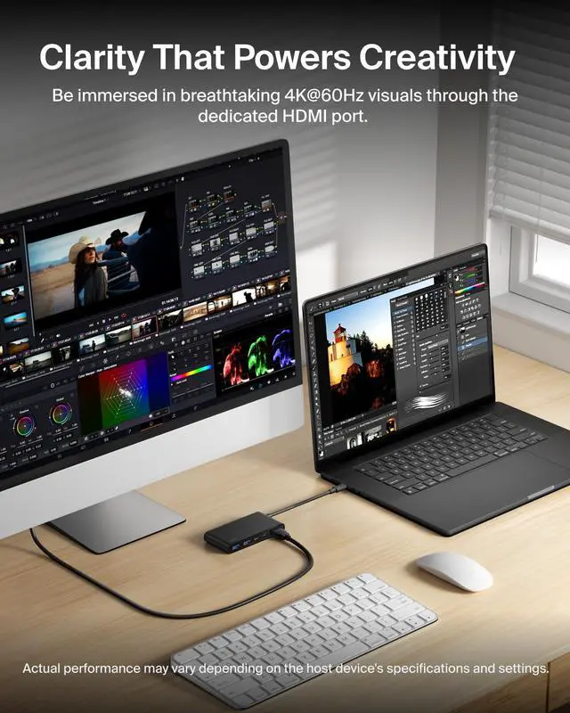 4K HDMI SUPPORT: This 5-port USB C hub lets you enjoy crystal clear visuals with HDMI 2.0, supporting resolutions up to 4K at 60Hz.** Perfect for extending your workspace or streaming in high definition.