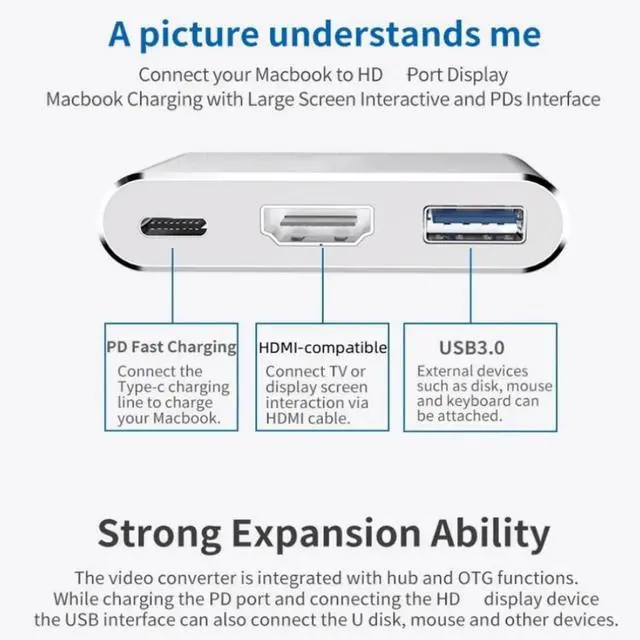 - Package inlcuded: ·1 x 3 in 1 USB C Hub