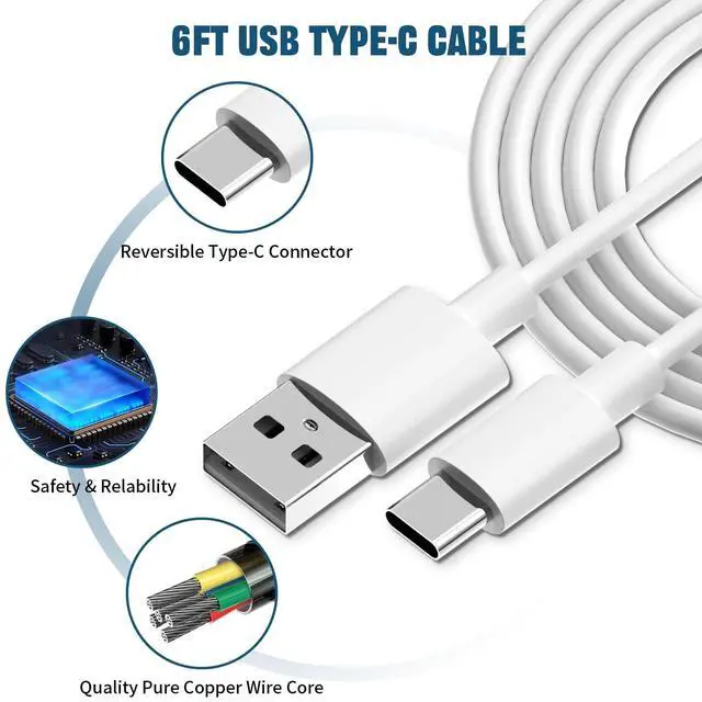 Package Includes: 2-Pack 15W Adaptive Fast Charger + 2-Pack 6 feet USB Type C Cable.