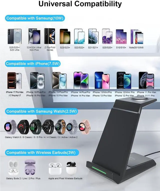 | Qi Phones | iPhone17/16/15/14/13/12 Series | Qi Phones | Qi Phones | Type-C Wired Charge | Type-C Wired Charge | Qi Phones |