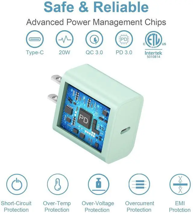 - Built-in Safeguards:ETL, FCC, CE, ROHS certificated. Multi-charging protection keeps your device safe from over-current over-voltage over-heating & short-circuiting. exhaustive protection while charging.