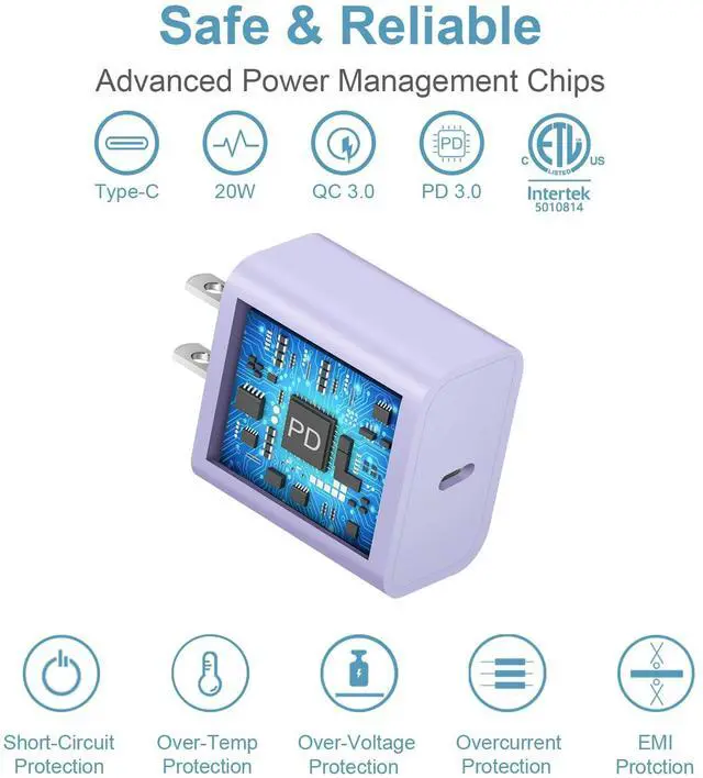 - Built-in Safeguards:ETL, FCC, CE, ROHS certificated. Multi-charging protection keeps your device safe from over-current over-voltage over-heating & short-circuiting. exhaustive protection while charging.