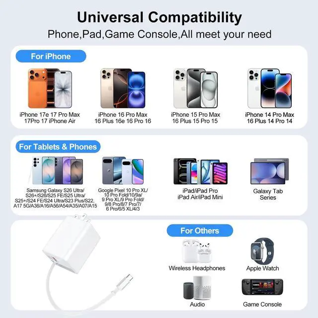35W Retractable Charger provides 3A to give your samsung galaxy s26 ultra s26+ s25 fe power at a faster rate. Charge your iphone 17 up to 70% in 30 minutes.