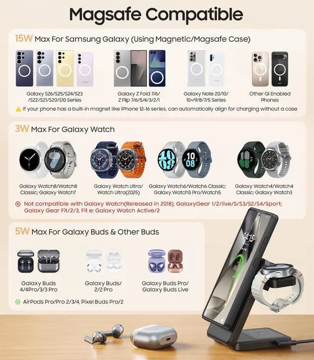 3 in 1 Magnetic Wireless Charger for Samsung Galaxy Devices