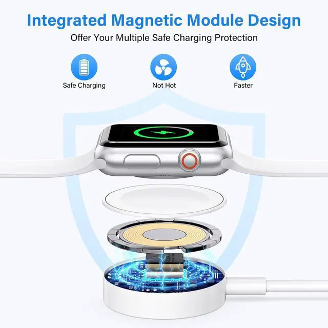 Safe and Reliable: for iWatch charger cable is made of high-quality ABS and pure copper wire, the cable has been tested for 20,000+ times of bending. Built-in safety functions such as over current, over voltage, short circuit, and over temperature protection to provide you with a a stable, fast and safe charging experience.
