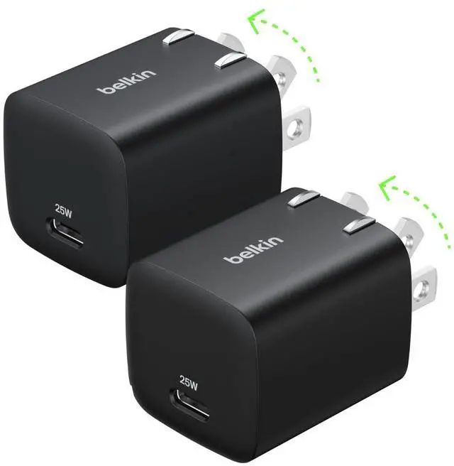 USB C Charger Block 25W (2 Pack) PD 3.0 PPS Super Fast Charging - Samsung Galaxy S25, S24, Apple iPhone 17, Air, Pro, Pro Max, AirPods, Apple Watch, Google Pixel 10, Nintendo Switch - Black
