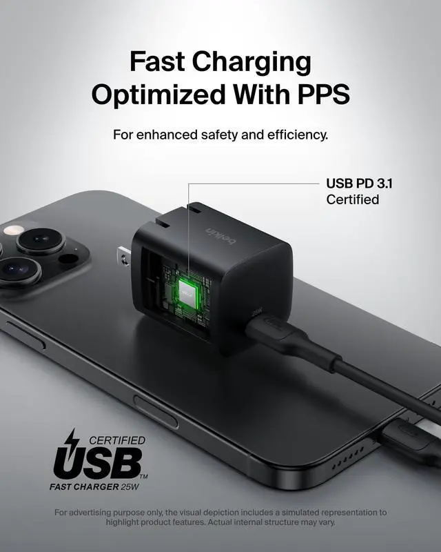 USB-C PD 3.0 CERTIFIED: To ensure safe, high-speed charging, this 25W USB-C wall charger features Programmable Power Supply (PPS) for real-time power adjustment, providing optimal charging for Samsung, iPhone, and other USB-C devices.