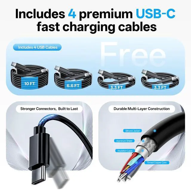 What You Get - 2X USB C Charger Block , 4X USB-C to C Fast Charging cable, user manual, 24-month warranty, and our friendly customer service