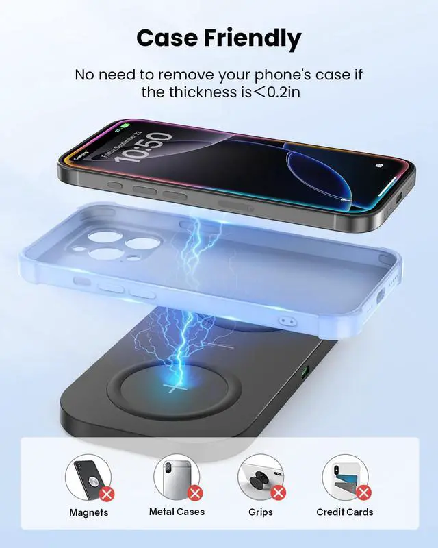 1. Please check whether the device is aligned accurately; 2. The thickness of your phone case should not exceed 5mm/0.2in; 3. It’s normal if your device heats up slightly, which won’t affect its safety and service life.