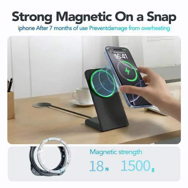 This magnetic wireless charger is perfectly compatible with any phone that supports the Qi wireless charging protocol, provided that you use a magnetic phone case. This ensures more precise alignment between the charger and your phone, delivering the highest quality charging experience.