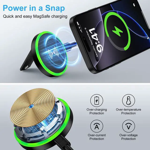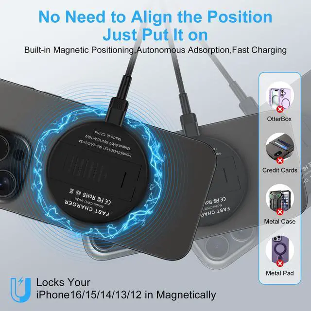 The built-in magnets align perfectly with -enabled iPhones, preventing disconnections and ensuring a stable, efficient charge even when in use. No more worrying about your phone slipping off the charger!