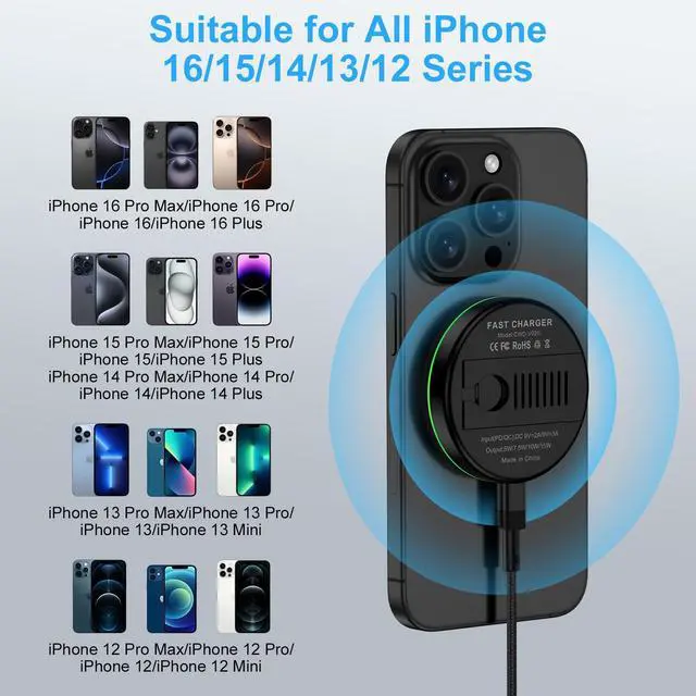 7.5W Wireless Charging Mode compatible for iPhone16e/16/16Plus/16Pro/16ProMax//iPhone 17/17 Air/17 Pro/17 Pro Max/15/15 Pro/15Pro Max/15Plus/14/13/12 series