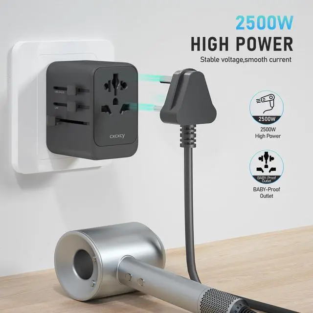 [Worldwide Compatibility for 200+ Countries ] Equipped with 4 interchangeable plug types (Type A/C/G/I), this all-in-one adapter works with sockets in over 200 countries and regions. Type C fits most European nations (France, Germany, Italy, Spain, etc.); Type G for UK, Ireland, Hong Kong, Malaysia, Singapore; Type I for China, Australia, New Zealand, Argentina; Type A for USA, Mexico, Canada, Japan. Note: Not compatible with Type D (India) or Type M (South Africa) sockets.