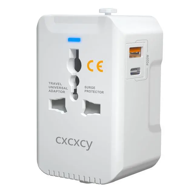 20W PD Fast Charging Universal Travel Adapter, 3-in-1 with 1 Type-C & 1 USB-A Ports, European Plug, International Power Adapter for US/JP/EU/UK/AUS/CHN, Worldwide Travel Essentials White