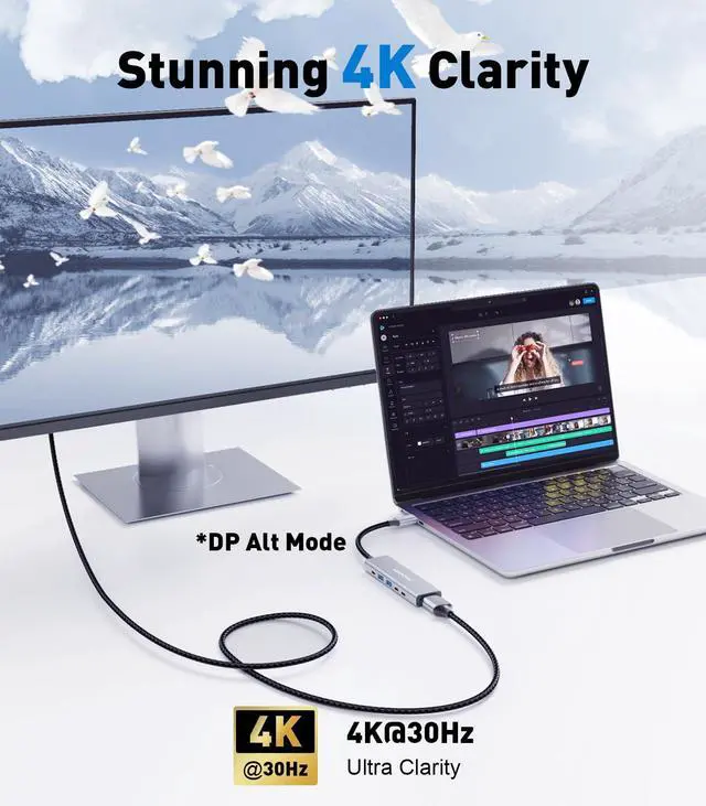 4K Visual Feast: Easily connect 4K@30Hz HD video to any monitor, TV or projector by mirroring or expanding the screen with the USB Type C to HDMI adapter. Compatible with 1080p@120Hz high refresh rate, the clear and smooth video transmission will bring the ultimate viewing experience to your eyes.