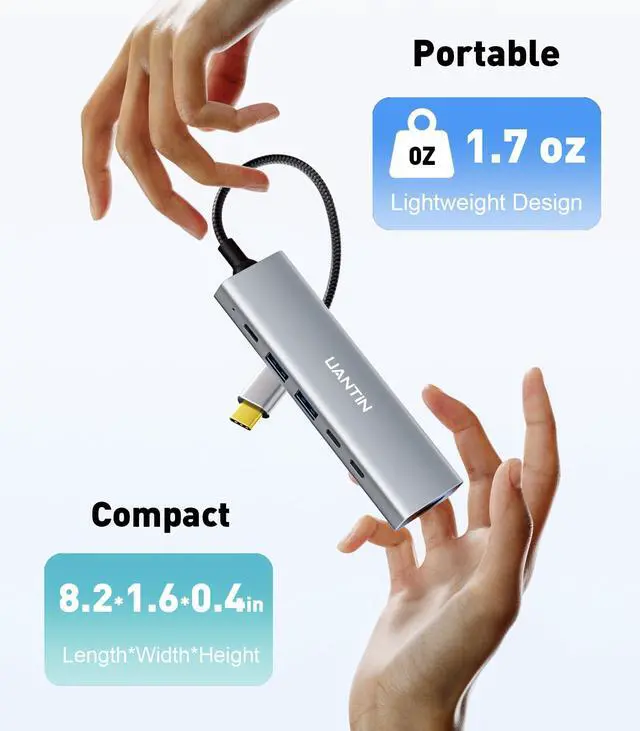 6-in-1 10Gbps USB C Hub: The UANTIN 6-in-1 USB C hub easily expands USB-C/Thunderbolt 3-4-5 ports into two 10Gbps USB-C Gen 2 ports, two 10Gbps USB-A 3.2 Gen 2 ports, 4K 30Hz HDMI, and 100W Power Delivery to help you maximize the potential of your laptop's USB-C port.