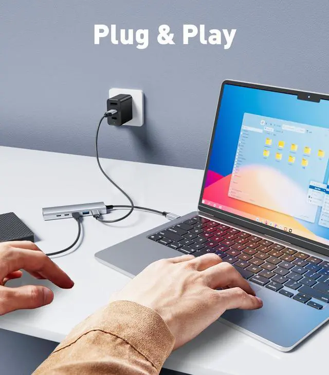 Start the USB 3.2 Era: Transfer files, photos and videos at up to 10Gbps with this usbc hub's dual USB-C data ports and dual USB-A ports. You can also connect various USB peripherals without delay. Note: The usb c port labeled 10Gbps is for data transfer only, video and charging are not supported.