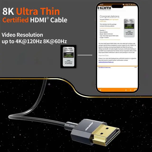 Plug and Play & Flexible 8K Ultra Thin HDMI Cable
