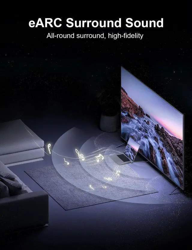 [ The World of Immersive Sound ] HDMI to HDMI cable supports enhanced audio return channel (eARC) technology, delivering high-quality, uncompressed audio formats including Dolby Atmos and DTS:X. Hear every detail and feel the depth of sound as if you were in a movie theater. Enjoy crystal-clear, high-resolution audio to elevate your movie-watching experience.