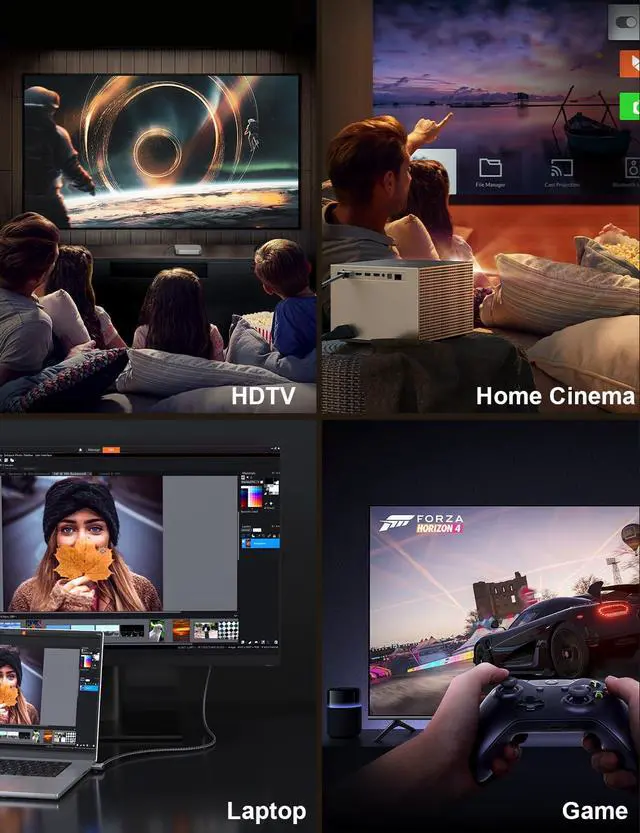 Compatible with most HDMI devices. For PS5, PS4 Pro, PS4, PS3, Xbox Series X, Xbox Series S, Xbox One, RTX 3090, RTX 4090, Roku TV and more.
