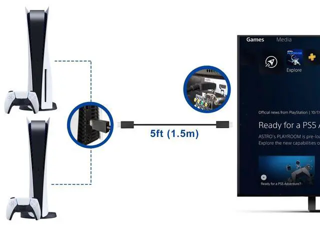 Official PS5 HDMI Cable for PlayStation 5 Console - Ultra High Speed HDMI 2.1 Cable, True 4K Resolution Up to 120Hz Certified & 8K HDR & VRR & ALLM - Original OEM Quality (5FT/1.5M)