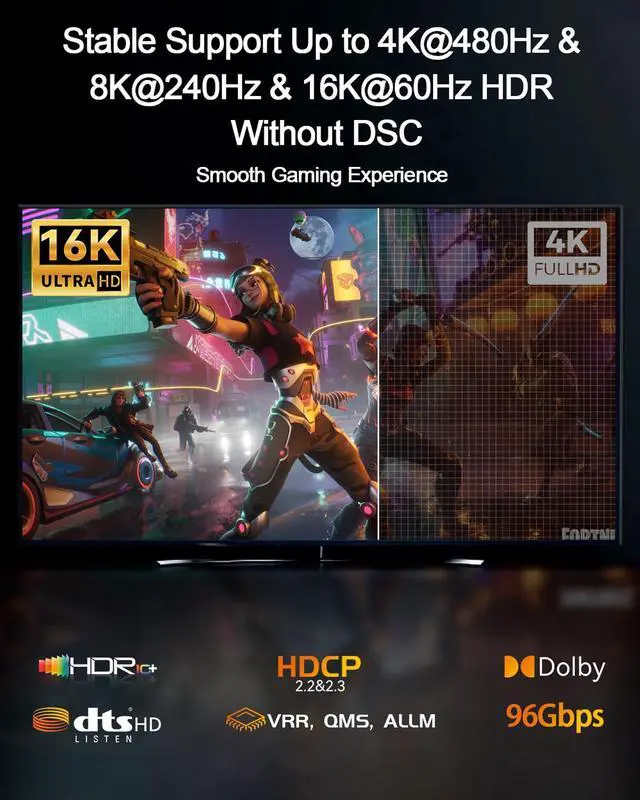 ![Alt view image 6 of 7 - 16K HDMI 2.2 Cable [16K@60Hz, 8K@240Hz, 2K/4K@480Hz/240Hz], 96Gbps Ultra High Speed Braided HDMI Cord, HDR10+ eARC HDCP 2.3 2.2 Cables for PS5/PS4/Xbox/Gaming PC/Monitor/Projector/Roku TV, 3FT](https://c1.neweggimages.com/productimage/nb640/C6EHD26042206V4U418.jpg)