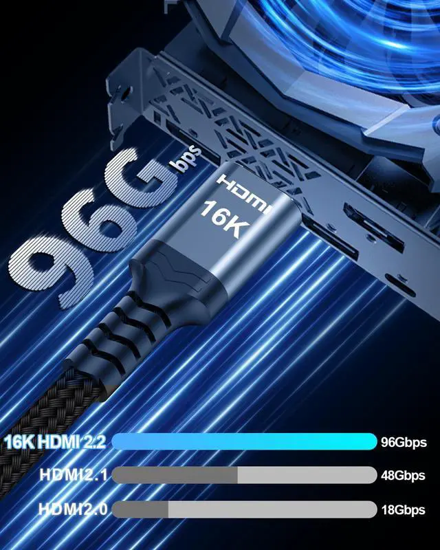![Main image of 16K HDMI 2.2 Cable [16K@60Hz, 8K@240Hz, 2K/4K@480Hz/240Hz], 96Gbps Ultra High Speed Braided HDMI Cord, HDR10+ eARC HDCP 2.3 2.2 Cables for PS5/PS4/Xbox/Gaming PC/Monitor/Projector/Roku TV, 3FT](https://c1.neweggimages.com/productimage/nb640/C6EHD26042206V4JU42.jpg)