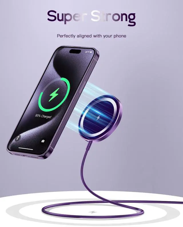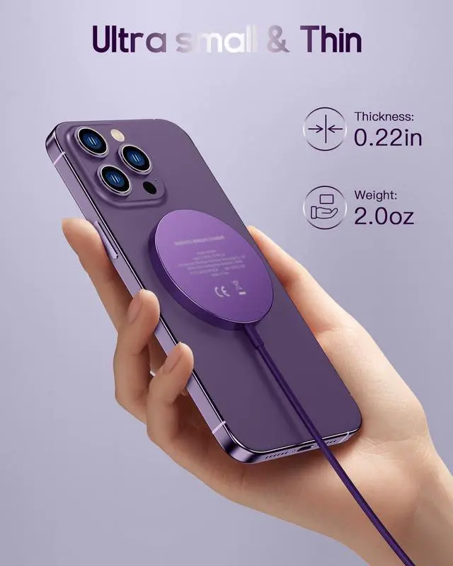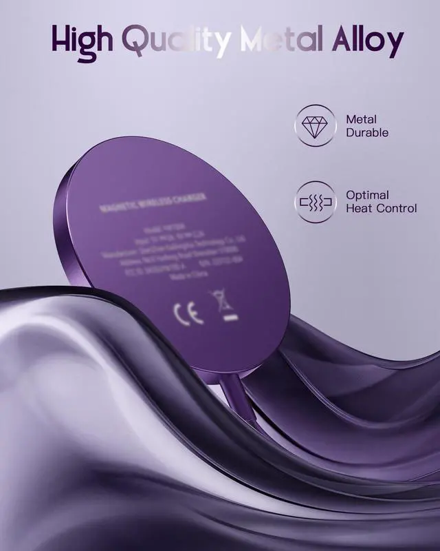 for Mag-Safe Charger, Magnetic Wireless Charger Made for iPhone 17/17 Pro/17 Pro Max/Air/16/15/14/13/12 Series, Mag Safe Charging Pad for AirPods Pro 3 2 (Purple)