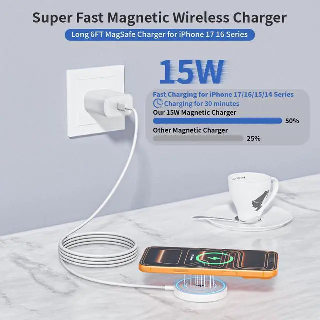 ![Alt view image 4 of 7 - Magnetic Wireless Charger for iPhone, [Apple MFi Certified] 6FT Apple Mag-Safe Charger Cable Wireless Charging Pad with USB C Fast Charging Block Compatible with iPhone 17/Air/16/15/14/13/Pro Max/Plus](https://c1.neweggimages.com/productimage/nb640/C6EHD26042208JKN578.jpg)