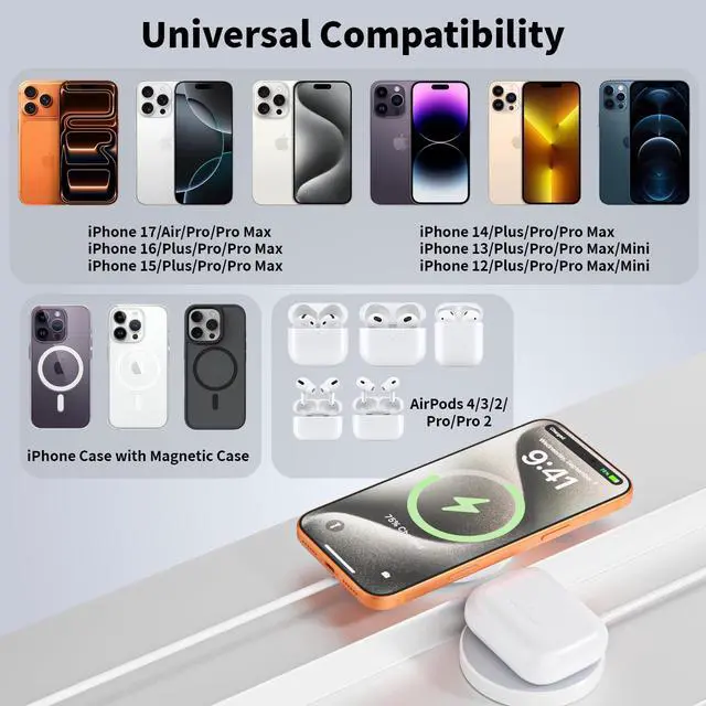 ![Alt view image 7 of 7 - Magnetic Wireless Charger for iPhone, [Apple MFi Certified] 6FT Apple Mag-Safe Charger Cable Wireless Charging Pad with USB C Fast Charging Block Compatible with iPhone 17/Air/16/15/14/13/Pro Max/Plus](https://c1.neweggimages.com/productimage/nb640/C6EHD26042208JKVJ39.jpg)