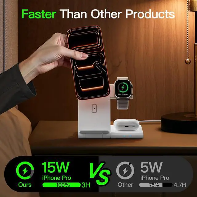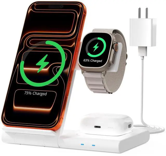 3 in 1 Wireless Charger Station: This 3-in-1 wireless charger is designed to work seamlessly with a variety of devices, including iPhone 17 16 15 14 13 12 11 8 Pro Max Mini Plus X XR XS Max SE Plus Series, Apple Watch Series 11 10 9 8 7 6 5 4 3 2 SE and Ultra, AirPods 2 3 4 Pro 2 (Note: for Airpods 2 3 4, needs work with a MagSafe charging case). A perfect Christmas present for couple (to husband or wife), son, daughter, or any loved ones.